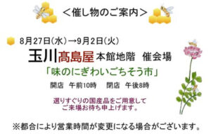 7月19日~25日(火曜日)まで 地下催事場 <諸国味紀行>に出店いたします。